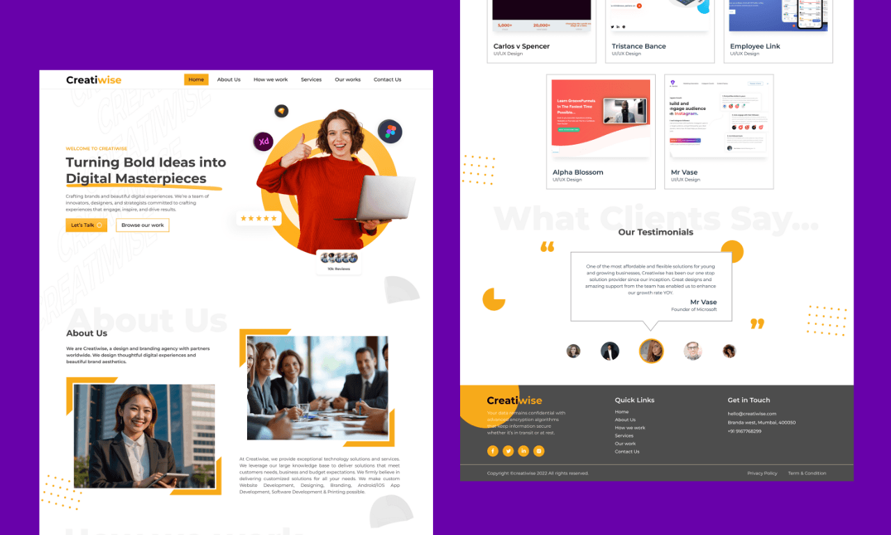 Using Framer and Figma, I design and build responsive, fast, and visually engaging websites. Each section intentionally created for a seamless user experience that feels alive.